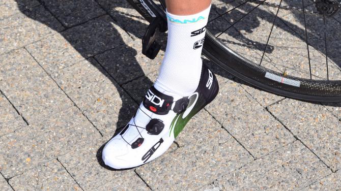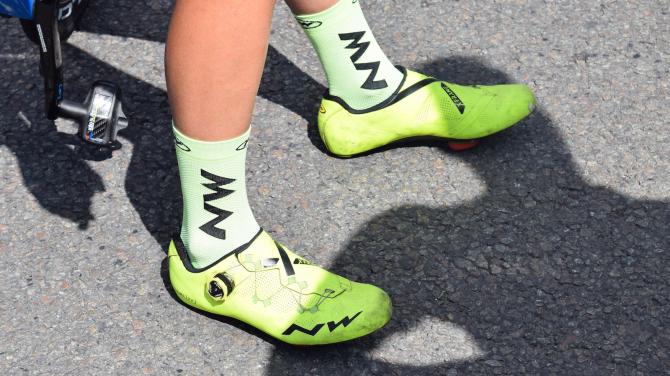 ▲移动之星车队的锁鞋赞助商为Diadora,所以车队大部分车手都使用Diadora的鞋套……