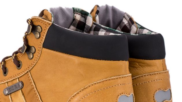 中高帮设计看起来相当不错,皮革显得柔软而柔软,DZR说鞋帮“结实,透气,像一对好的工作手套一样。