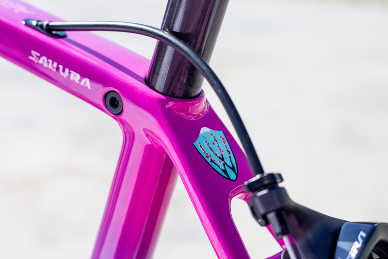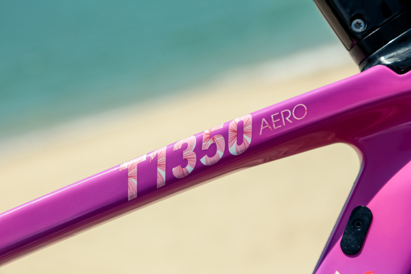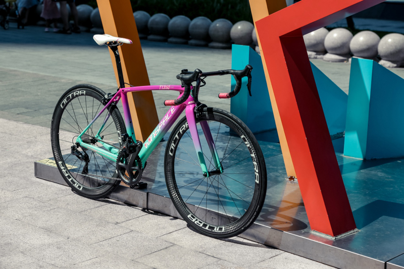 车架选择的是T1300的升级版本T1350作为涂装车型,T1350是从口碑、性能双收的经典车架T1300延续而来,继承了T1300高强度、超轻、破风管型的设计;在此基础上,升级传统的坐管锁紧方式,改用隐藏式坐管夹,不仅降低了重量,而且提升了强度和美观度以及便捷性;
