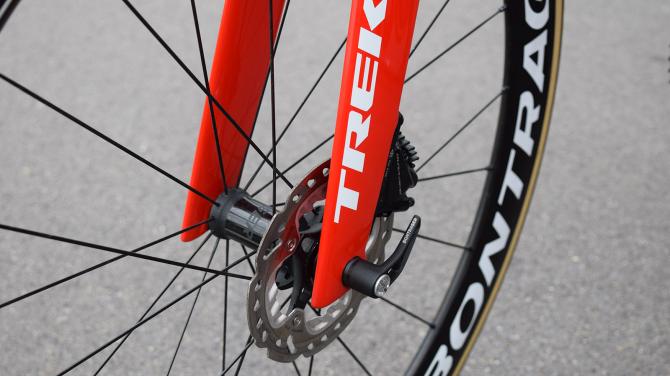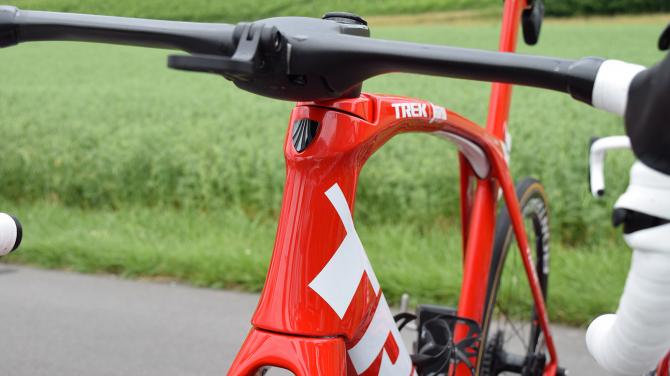 ▲斯泰芬的Madone SLR Disc在环瑞士时拍摄,采用崔克-世家兰铎车队传统的大红色涂装