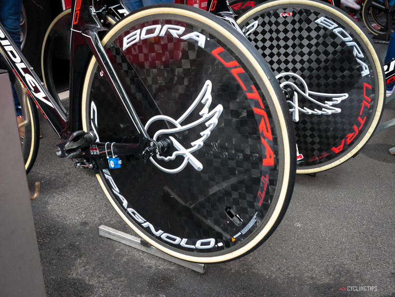 视频中所制造的是场地赛使用的GHIBLI封闭轮组,现在的新品也升级到了全碳材质,而我们平时见得比较多的还是BORA ULTRA TT 封闭轮,TA多出现在个人计时赛和铁三比赛上。