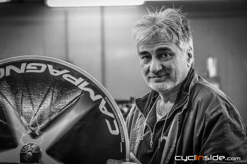 Franco Rigolon老先生,可以称得上是CAMPAGNOLO公司的泰斗级的人物了,对于封闭轮没有人比他的经验更丰富了,根据统计Franco Rigolon手工制作一个封闭轮需要大概3天半的时间,这也是为什么CAMPAGNOLO的封闭轮单轮的售价便高达3000多欧元。