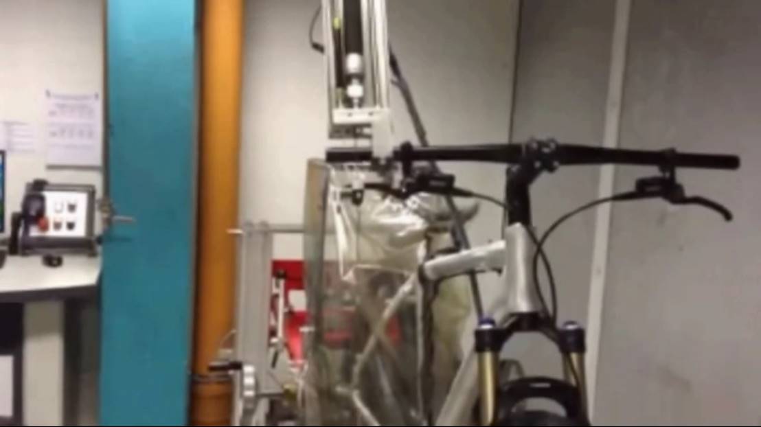 ▲整车负重震动测试看起来像是自行车在跳舞,其实这对于自行车来说是一种酷刑。
