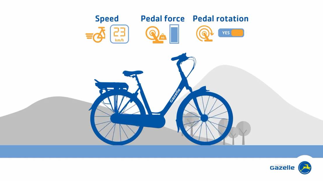 ▲电助力自行车上内置速度传感器、踏力传感器以及踏力转动传感器