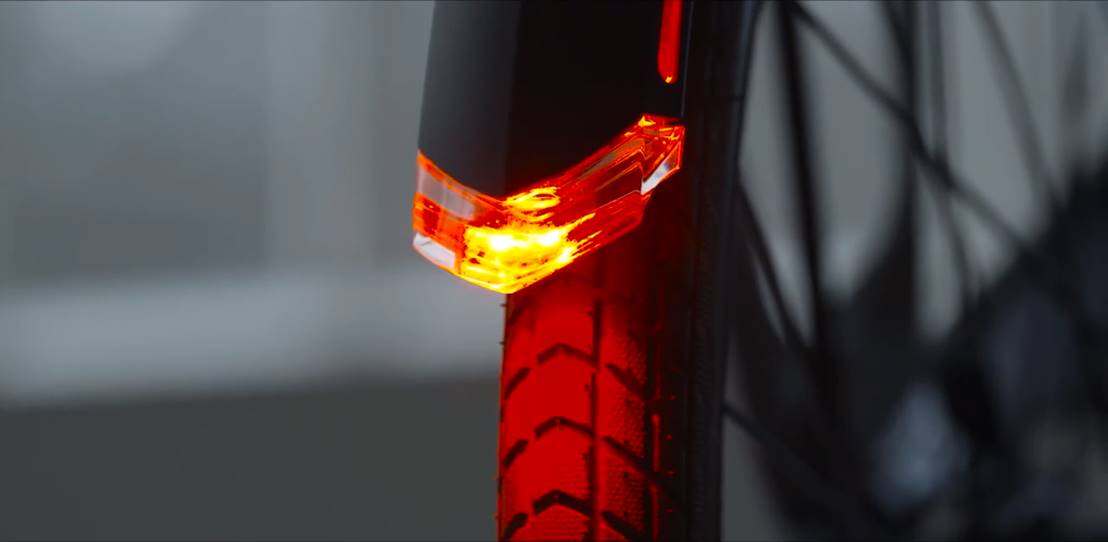 ▲挡泥板内置前后灯,后挡泥板灯同时兼具刹车灯功能。