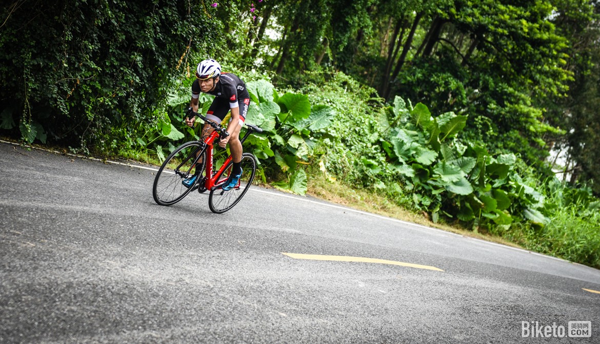 由于车架管型粗壮,拥有不错的踩踏刚性,发力比较直接。但受制整车的配置,整备质量达到8.6kg,整体加速的感觉还是稍有含糊,相信升级轮组能有效解决这个问题。粗壮的管型确保了整车的操控性能,入弯和过S型弯时车身摆动迅速,指向也比较精准,在操控方面可以给个好评。