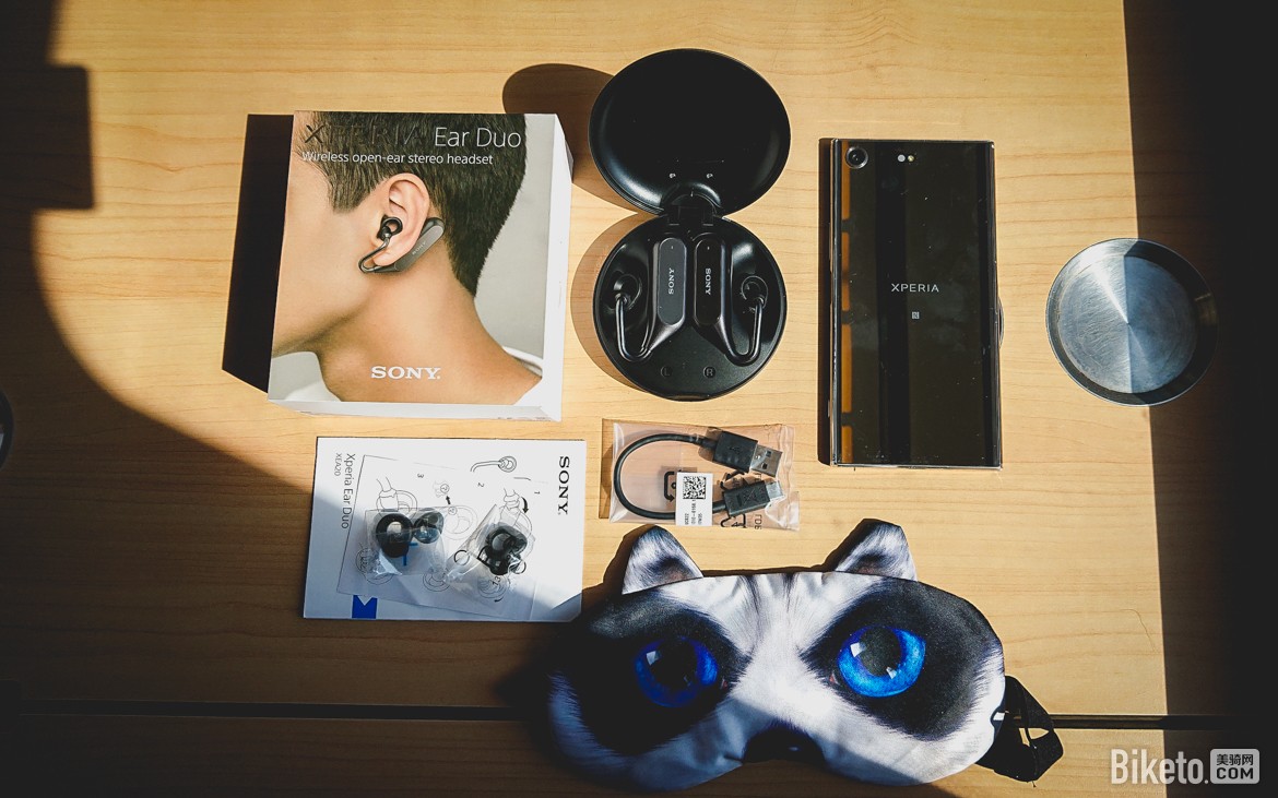 双十一之际,索尼Xperia Ear Duo真无线全开放式立体声耳机到手。由于工作原因,一直没有时间拍个开箱图。直到踏上了广深城际列车,小编才得闲将盒子、说明书、充电线、替换耳塞一一拿出,拍下一张开箱图。包装秉承了Sony影音产品一贯的简洁设计,除耳机充电盒、耳机本体,还有简明的图示说明指南,标配一根Type-C充电短线,两对可替换的环形撑架(二哈眼罩、Xperia XZP非附赠产品)。