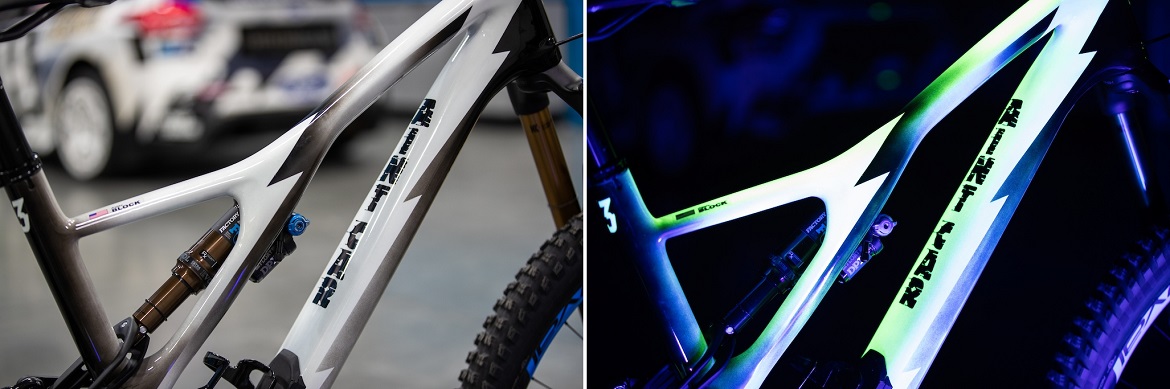 而神奇的是,当夜幕降临,整车处在黑暗中时,车架的秘密才显露出来——这是一辆能在黑暗中发光的车手战车!