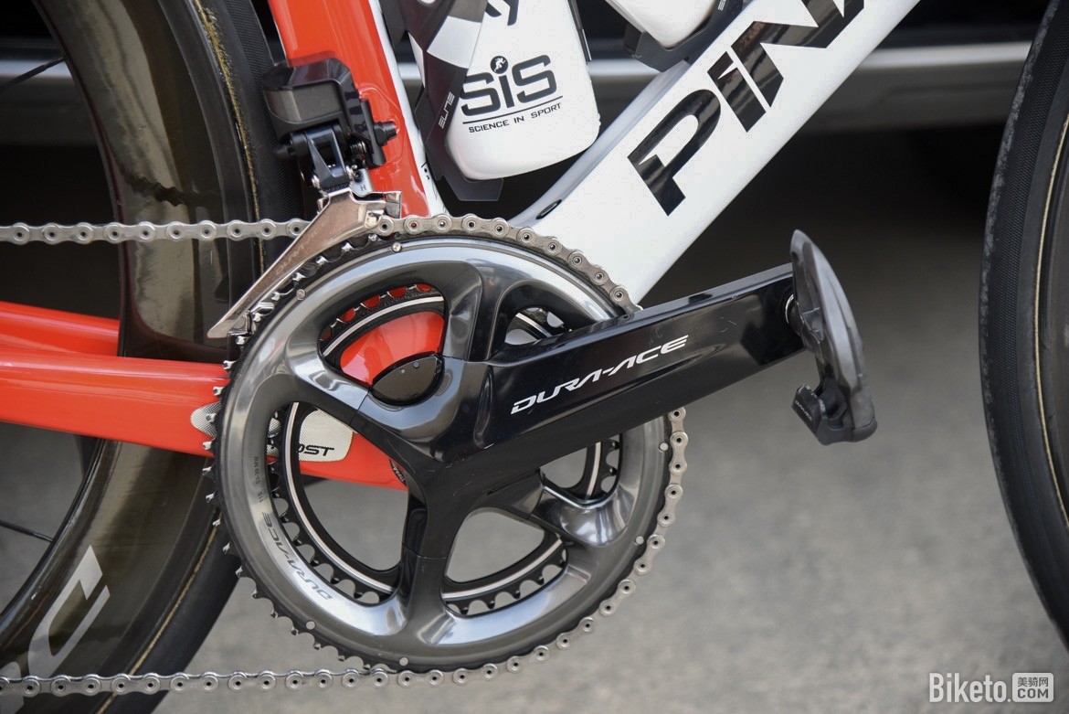 ▲黑灰渐变的DA R9100-P功率牙盘,赛场出境率颇高