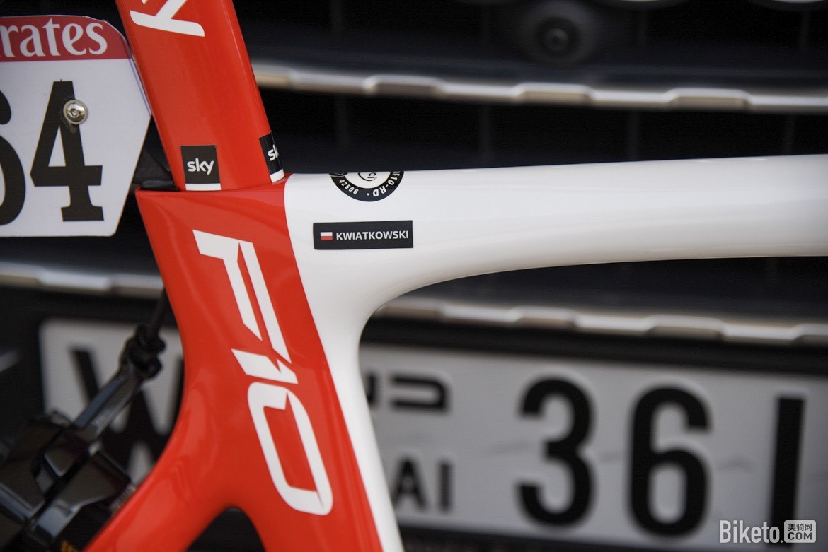 赛场上有这样一群车手,他们骑着特殊涂装的战车驰骋疆场。波兰国家冠军,科维亚特科夫斯基也不例外,作为天空车队的一名明星车手,Pinarello为其打造了一台特殊的战车,鲜亮的红白配色极具辨识度。车身上点缀有波兰国徽的白鹰图案,科维亚特科夫斯基就如同这只白鹰,在赛场上展翅高飞。在环阿联酋赛场上,美骑前线记者就拍到了科维亚特科夫斯基的波兰国家冠军版Pinarello Dogma F10,一起来看看吧。