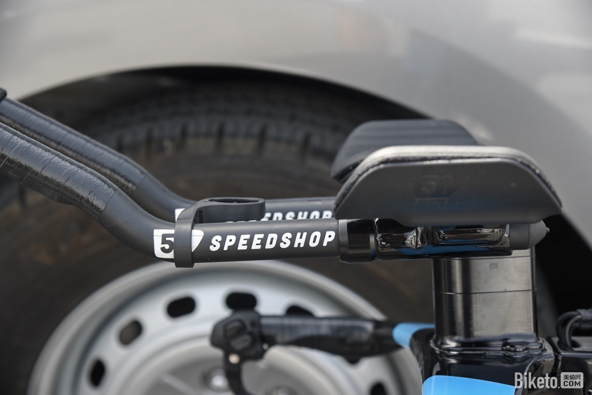 ▲操控组件由51 Speedshop提供,完全可调,高度,角度,长度,手臂垫宽度和休息把形状都可以调整以适应车手