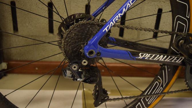 ▲斯蒂巴的车把上安装了Di2冲刺按钮