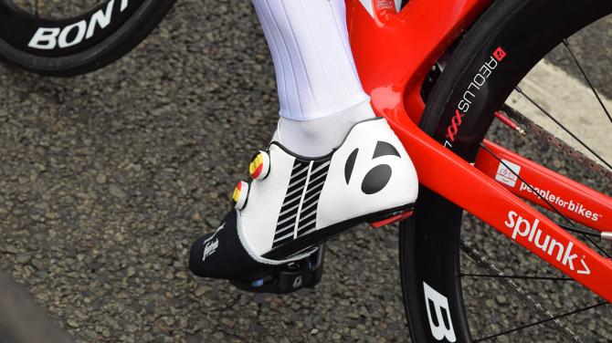 ▲比利时车手贾斯珀·斯泰芬的Bontrager锁鞋上有定制的BOA旋钮