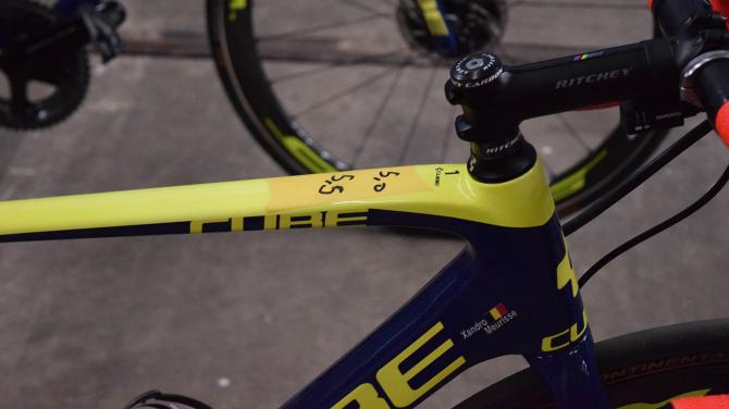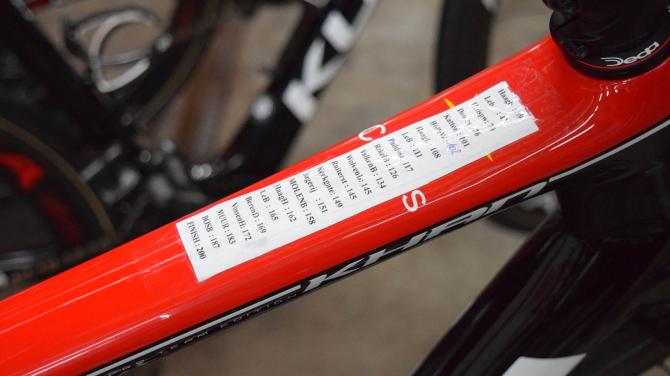 ▲出发前车手将自己需要的胎压标记在上管上