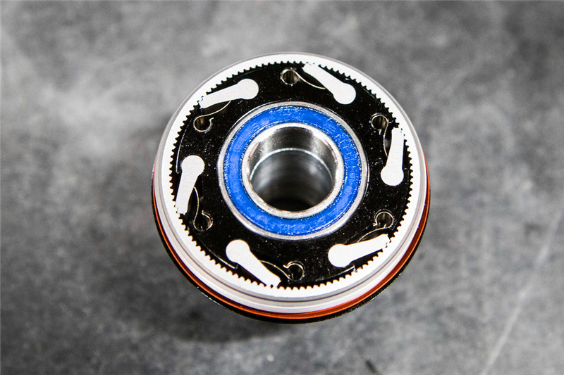 说起I9轮组,大家应该都能想到著名的120响塔基以及骑车时传来的美妙声音。那如果把120响改成690响会是一种什么体验呢?今年Industry Nine发布了新款的Hydra塔基,该塔基采用了一种连续分段式系统,三个千斤片轮流咬合使得塔基的响应角度达到了惊人的0.52度,即塔基每旋转1.2mm,就会有一次咬合。