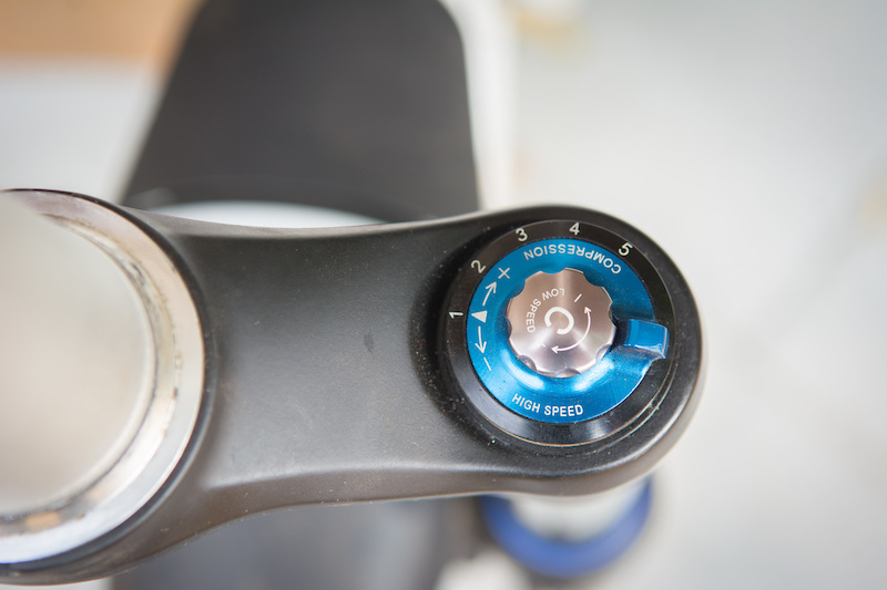 背衬式内部浮动活塞(IFP),避开了气囊式阻尼器,为简化和易于维护而变得越来越普遍;R2C2的密封阻尼器阀芯设计意味着可以很容易地将其卸下进行维修维护,维护时间非常短甚至,几分钟就好了。空气弹簧位于前叉的左侧,可以通过增加或移除多达三个气室垫块来改变末端支撑。较少的垫块会产生更线性的感觉,而添加更多的垫块则会增加抗底部冲击的能力。同时经过简单的操作就可以改变其行程。
