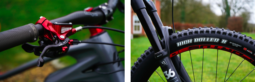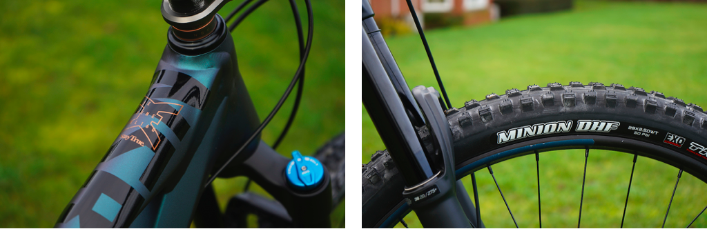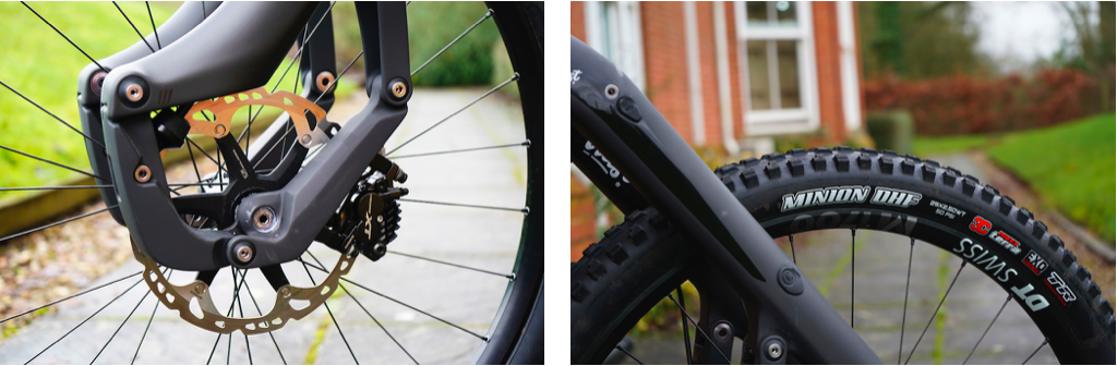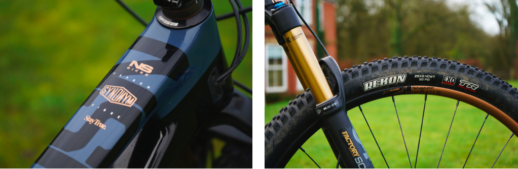 我们刚向NS要了这台车过来,甚至能看到来自Dave Arthur当地赛道上的泥土还留存在上面。这款车的设计理念据NS说是倾向于乡村林道的,但现在看来它更偏重于下坡多于林道,比如这120mm的前叉行程和67°的头管角度。