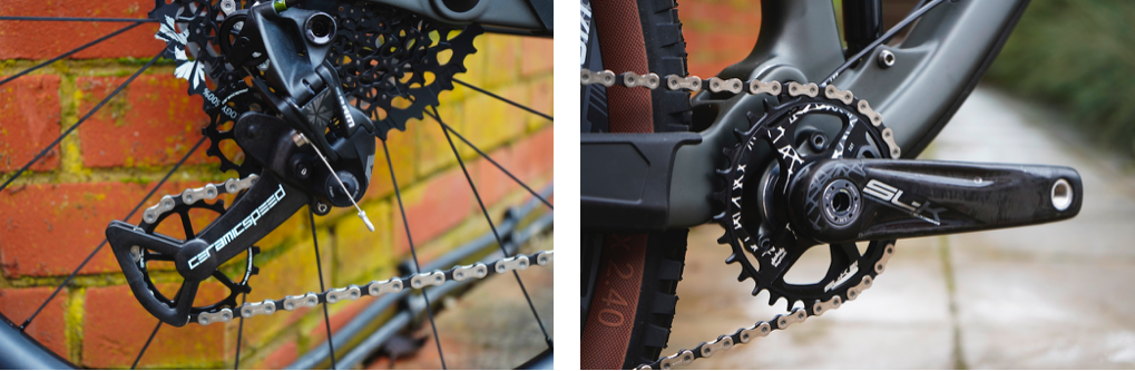 展会上另一个引人注目的车型就是这台Transition Smuggler。它绿色的DVO前叉和绿色的A2Z把组组件吸引的人们的目光,另外所有关于轴承的零配件都用Ceramic Speed也是值得关注的一点。