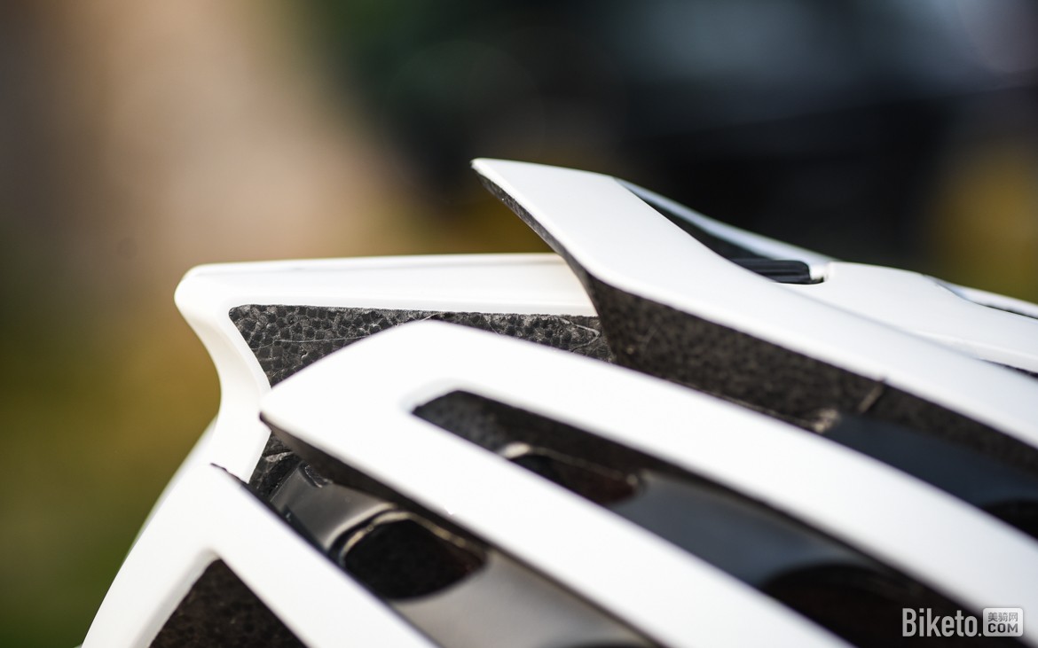 其实这是插在头盔后部的附件挂架,说到附件,就不得不说下Lazer提供的各种奇奇怪怪的配件了。首先,这个挂架就基本的一个功能是可以安装Z-LED尾灯。另外就是可以把内衬换成LifeBEAM心率监控内侧,并将信号单元挂在这个挂架上。