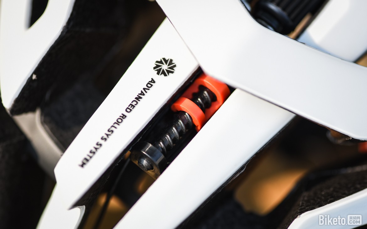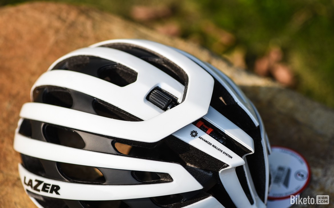 Z1使用了LAZER独有的Rollsys悬挂系统,还是更高端的Advanced版本。调节旋钮位于头盔上方,通过推动红色滑块拉动悬挂来收紧头盔悬挂。两年前小编我曾经写过一篇关于Rollsys悬挂的文章,大家可以点击传送门来了解:《独特的头盔悬挂系统 Lazer Rollsys系统简介》