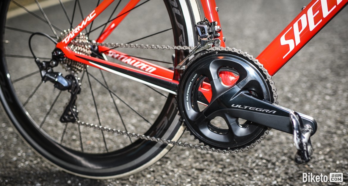 典型例子就是禧玛诺的R7000(俗称“105”)套件和R8000(俗称“UT”)套件。两款套件在功能和机械结构上几乎完全一样,但价格上却相差近千元,除了更高逼格的“ULTEGRA”字样和更强的刚性之外,重量是车主愿意投入更多资金选择UT套件的主要因素之一。一套105套件大套重量约2383克,而一套UT套件大套却只有约2012克,这三百多克的差别可能不大,但是这对于一台公路车减重来说是相当可观的数字了。预算充足的话,还有SRAM和Campagnolo 的碳纤维套件可选。
