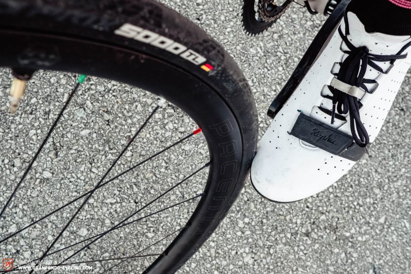 此外,这款车所使用的Carbon-Ti盘片让我们不太满意,我们认为还需要有点改进。虽然说它节省了非常多的重量,但从换挡变速的流畅度来看,甚至还比不上Shimano ULTEGRA盘片。车子的轴距为1014 mm,拥有我们测试的13款车中最长的轴距,这样的好处便是不会出现前车轮打脚的情况。在操控方面,由于超大的后飘角度,车手施加在车子前部的重量会减少许多,前轮有点“飘”,这样的结果便是在遇到复杂路况时,OPEN的操控会缺少一些精确度和直接性。但是在砾石路上骑行时,它给人的舒适性还是非常不错的,沥青路上更是如此,不过车手的骑姿不会那么紧凑,而是身形会拉长一些。