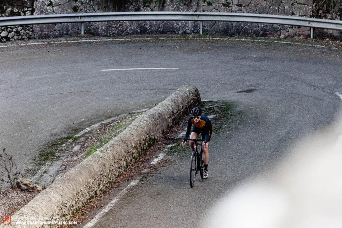 在骑行姿势上,这款车会比较紧凑,如果你将把立垫圈去掉,把座管高度降低,那车手的姿势将会变得更加具有攻击性。整车前后的避震效果不错,且非常平衡,即便是在粗糙的道路上骑行,它也会让你感到非常舒适。在我们之前的一次测试中,我们骑了这款车54码,54码的车架会有一个更大的后飘角度,因此骑行中你的屁股会比较舒服,但这次的测试中我们只借到了58码。如果你想在尺寸与舒适性之间找到一个平衡点,你最好选择小一码的车架。