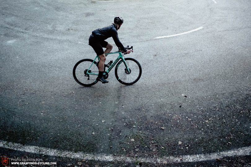 从动力输出方面来看,Infinito CV非常直接和高效。但很可惜,在我们的评测当中,有几辆车的加速性能比它还要出色。下坡和平路是这款车的优势领域,但爬坡它却表现平平。在操控上,它会给人一种平稳安全的感觉,即便在面对强风时也是如此。但当你的骑行节奏开始加快,开始挑战自身极限时,Bianchi在操控上却会缺少一些精确性。整车的骑姿较为伸展,这意味着前轮的压力会减少,因此在快节奏骑行过程中,会出现转向不足的情况。