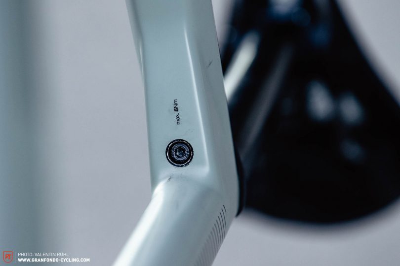 这款BMC的座管螺丝调节孔简直太反人类了,每次调节都是困难重重。不过谢天谢地,在这次测试中,我们没有调太多次。