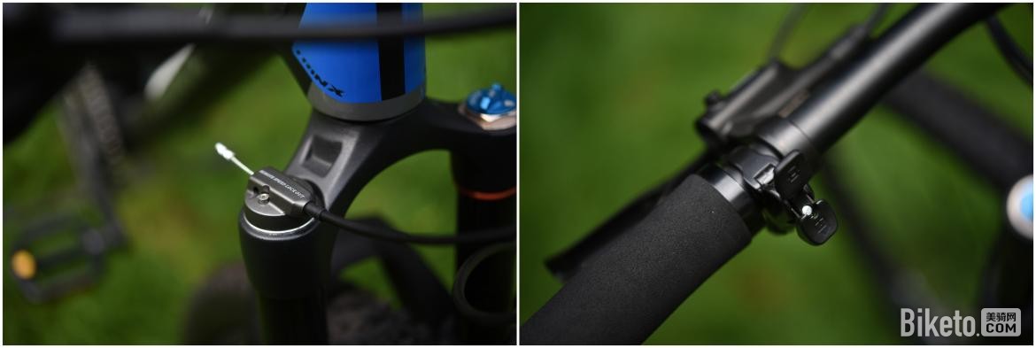 前叉配备了线控锁死机构,让车手在上坡时可以快速锁死前叉,提供更好的爬坡性能。