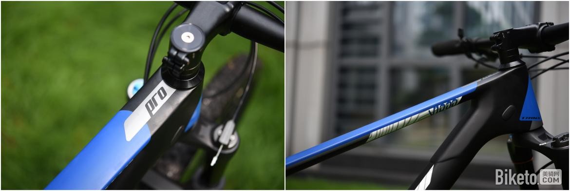 V1000 PRO采用TRINX旗下中端碳纤维XC车架,整体由东丽T800碳纤维打造。