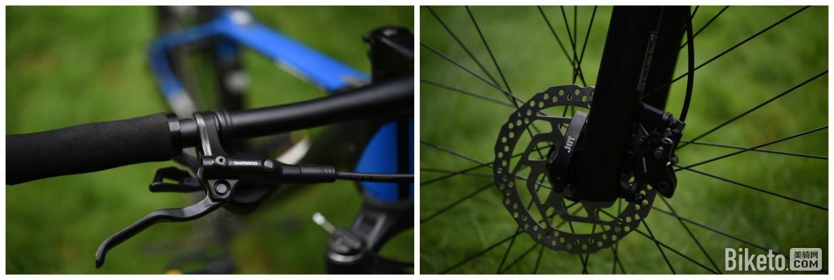 刹车为同类车型的标配,Shimano MT200,坚固耐用,也有不错的性价比。