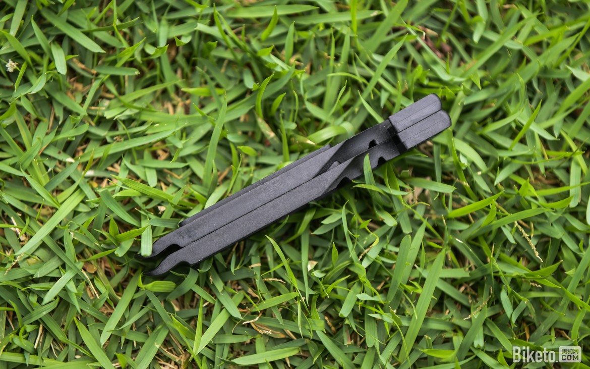 勾链棒本体使用复合材料制成,增加棒体刚性,毕竟没谁会想用一根软趴趴的撬胎棒。背面具有凹槽,方便两根棒合体收纳。