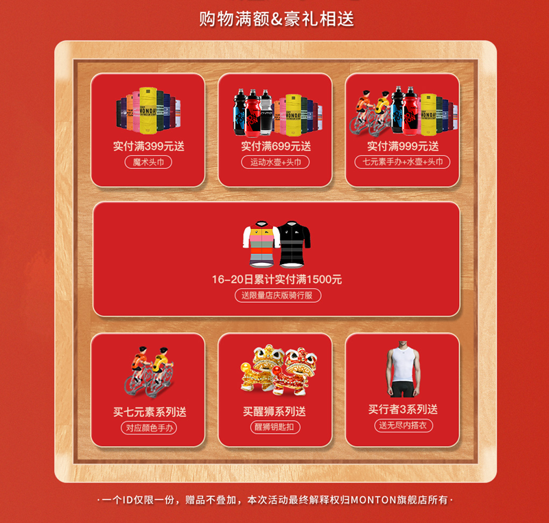 还有店庆版骑行服,七元素手办,醒狮钥匙扣等赠品,买满就送。