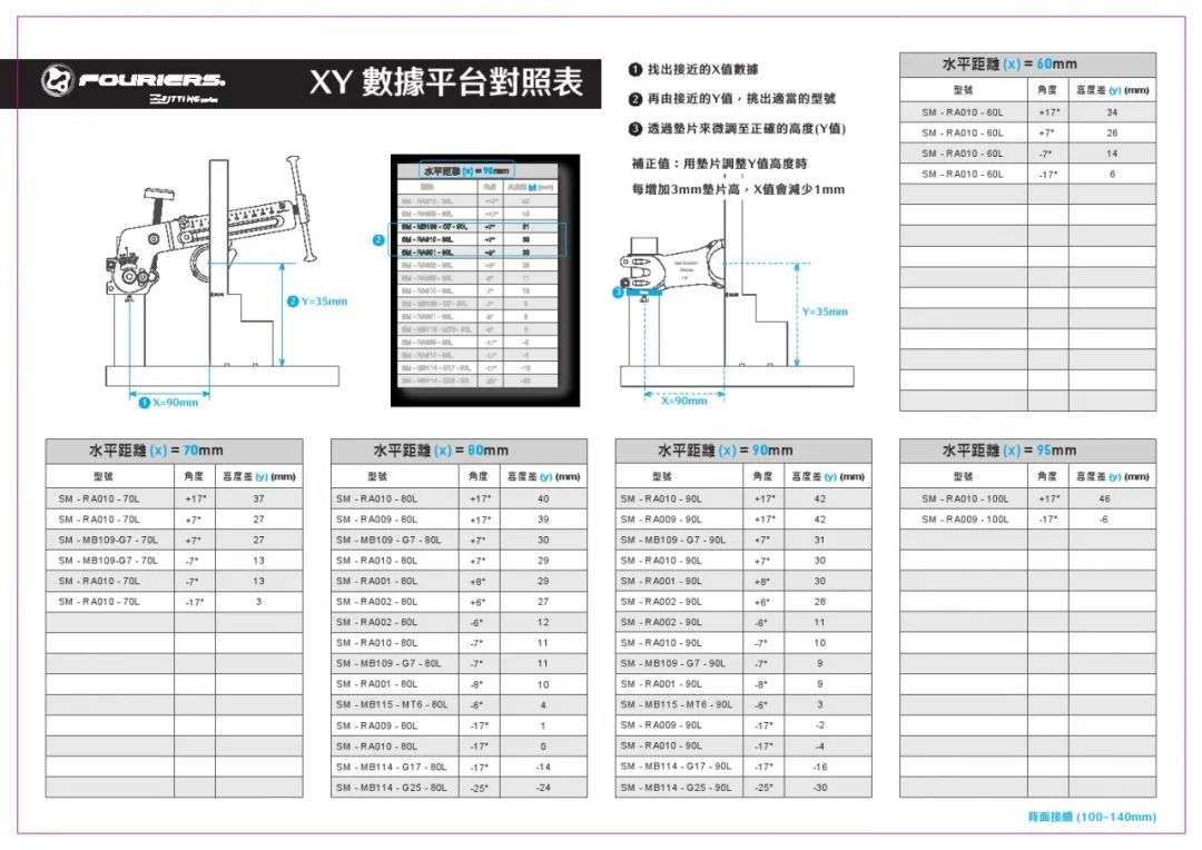 我们可以经由不同角度的把立或放置垫片取得正确的Y值。