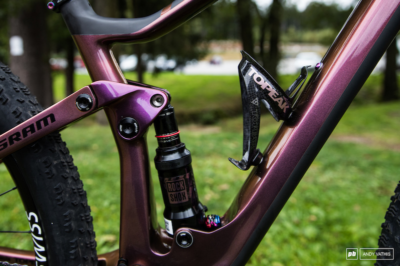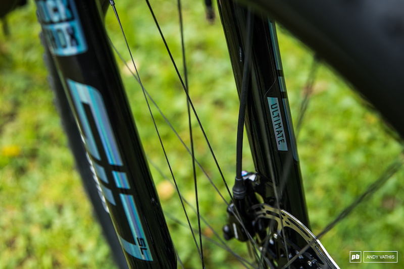 与Nino不同,Kate喜欢100毫米行程的SL Sid前叉。这个选择比Nino轻得多,所以SL帮她减轻了一些重量,提供了更好的刚性重量比。而且Kate为了本次世界杯在前叉放了两个气室垫块。而Nino的选择是Ultimate,这让他获得了10毫米的额外缓冲行程。