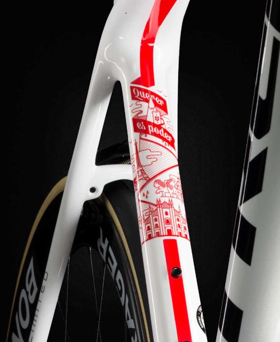 除了普通市售配色方案,Emonda也有车手的专属涂装,比如康塔多在职业生涯末年的这辆战车。纯白的底色清爽干练,并在车身、前叉部分搭配黄色、粉色和红色条纹,象征着他在三大环赛中取得的成就;同时还写上了康塔多总喜欢说的话,“Querer es poder”——有志者,事竟成。