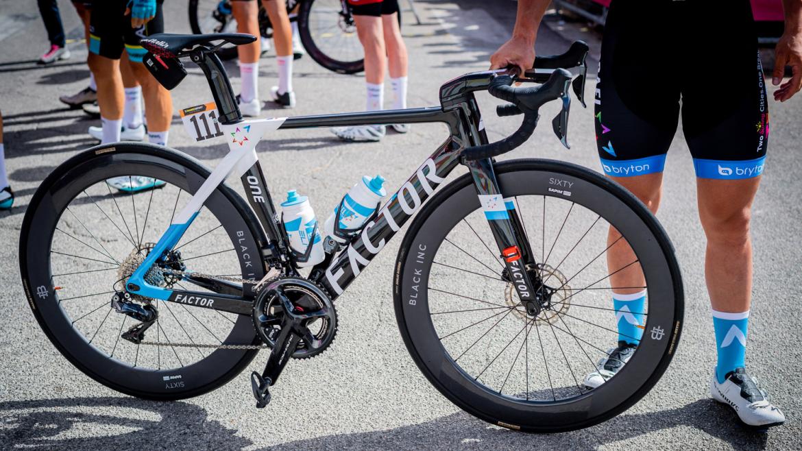 以色列创业国度车队的Ruby Barbier拿着他的Factor One,该车队是环意赛场上唯一使用Black Inc轮组和4iiii功率计的车队。
