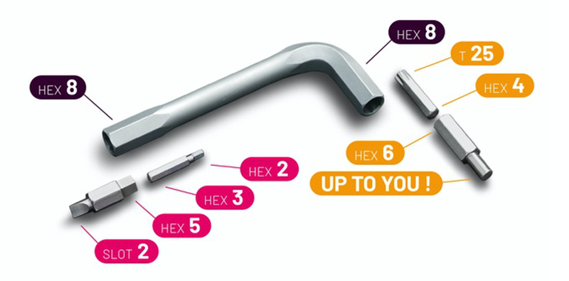 最近,PB还推出了款自行车专用工具。这套工具设计十分巧妙,仅重45克,通过转换头实现2-8mm内六角以及T25内梅花功能。并且PB还设计了一个支架将其收纳在水壶架下面。