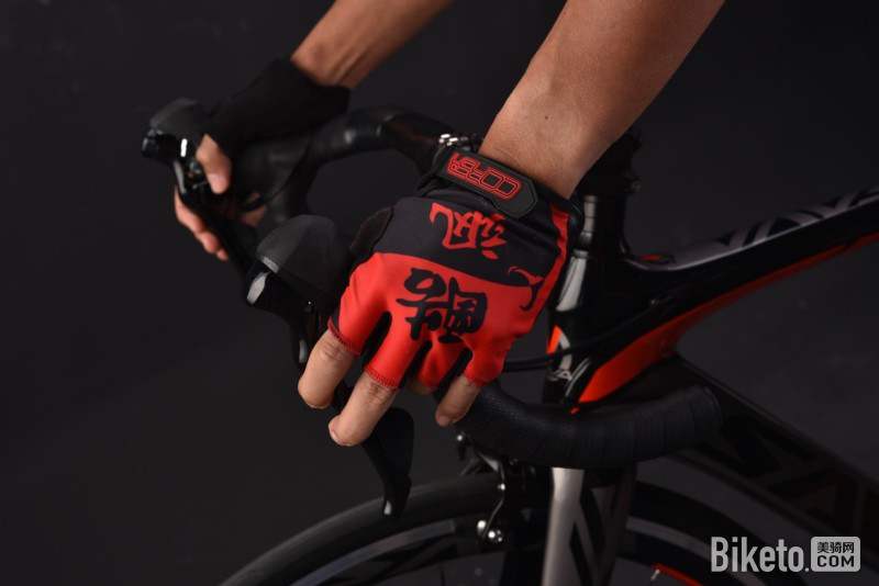 手心面的加厚处理恰到好处,既不会太厚、也不会太薄,也在气垫位置设计了牛的图案。手指的开孔处理到位,在进行大力刹车与快速换挡时都没有不适感、束缚感出现,抓把手感与缓震效果都十分不错。
