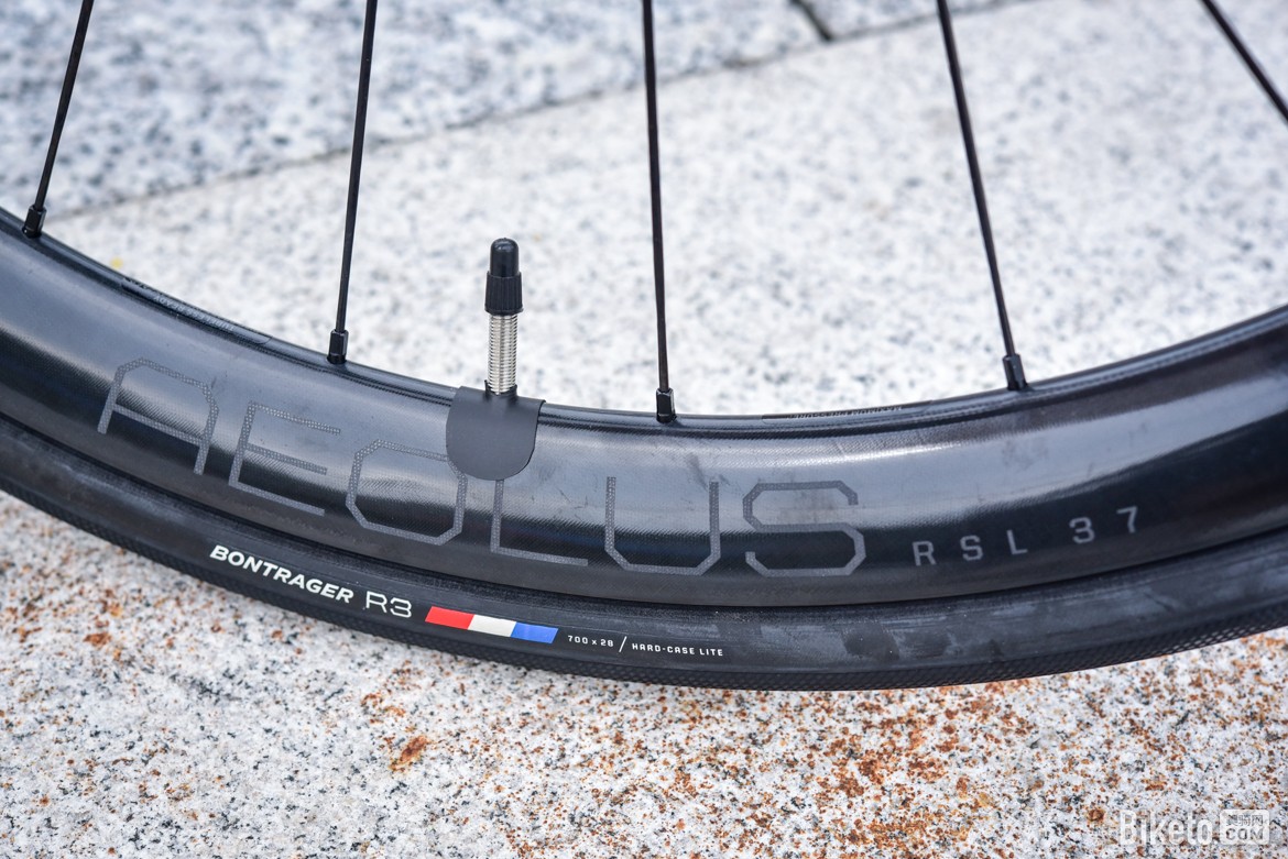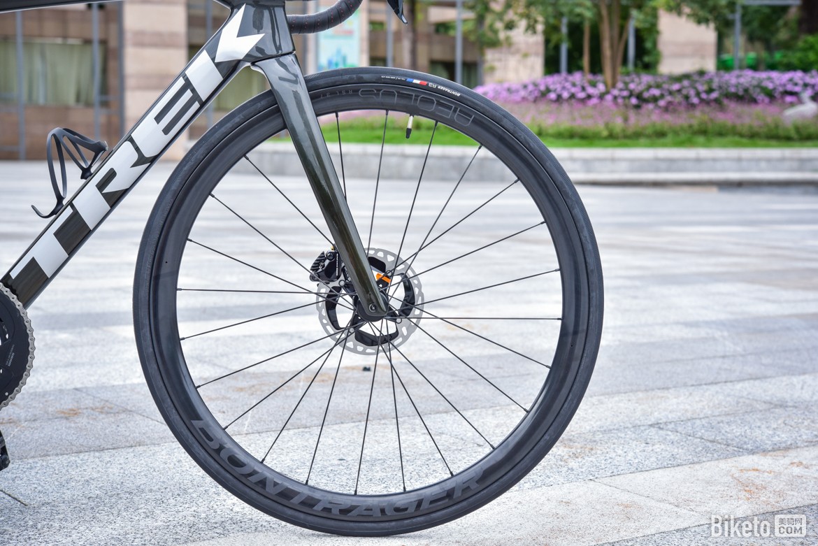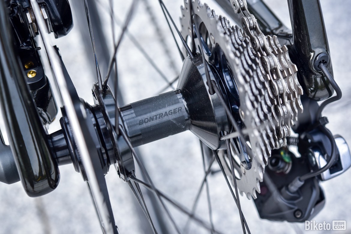 ▲轮胎采用28mm宽的Bontrage R3 Hard-Case Lite外胎,搭配Bontrager轻量化内胎