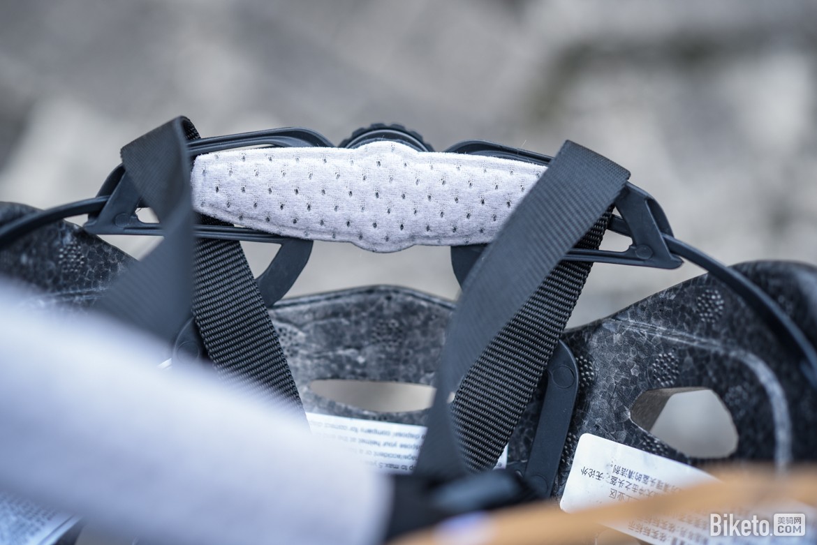▲下巴处的衬垫能将多出来的束带藏起来,提升舒适度,不需要的情况也可以拆除