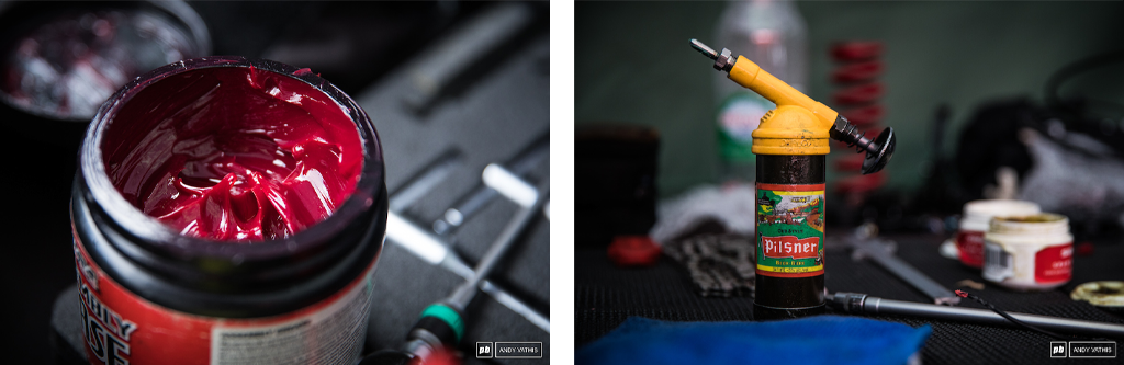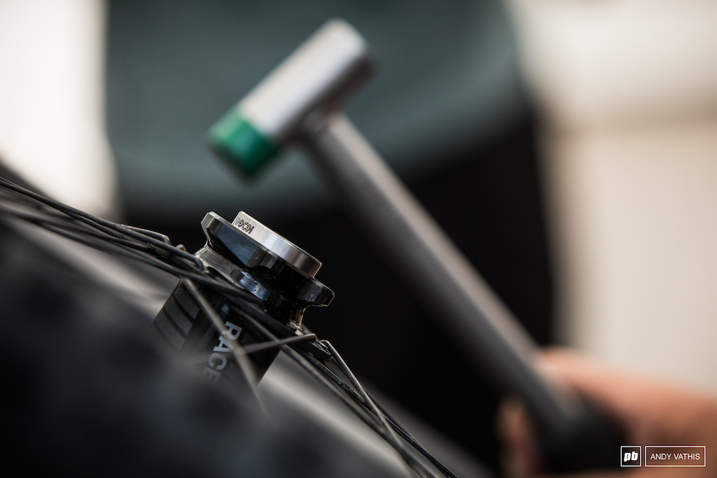 再看一眼新的 Blackbox 气压减震器。SRAM在营地搭了个“前叉塔”,上面挂满了ROCKSHOX前叉。不用说,到了下午,他们就有的忙活了。