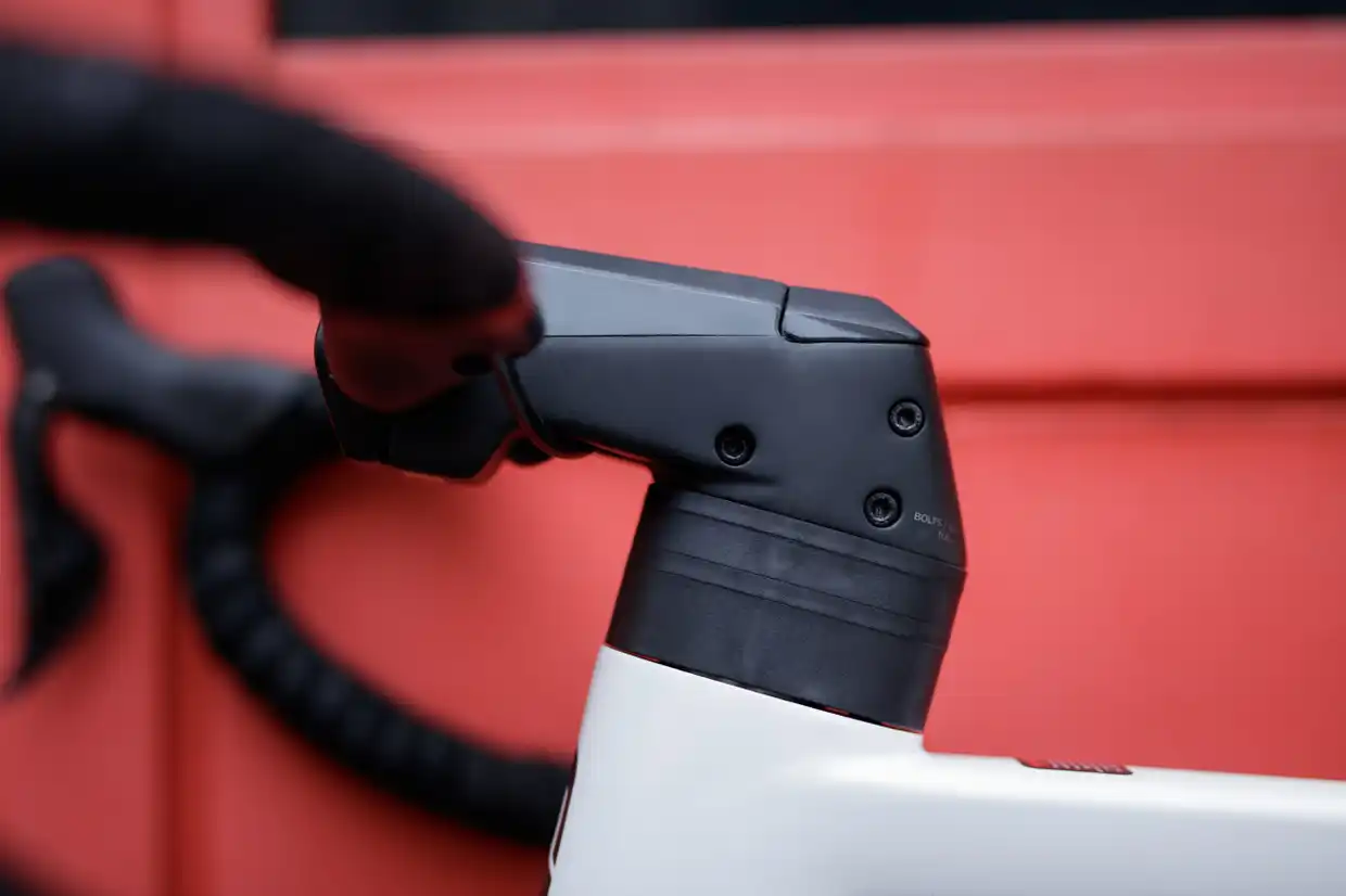 有些厂商做的也还说得过去。比如Cannondale的SystemSix,车架本来就粗壮,头管那边为了气动,截面更是宽, Knot 把立起码看上去就还挺协调。