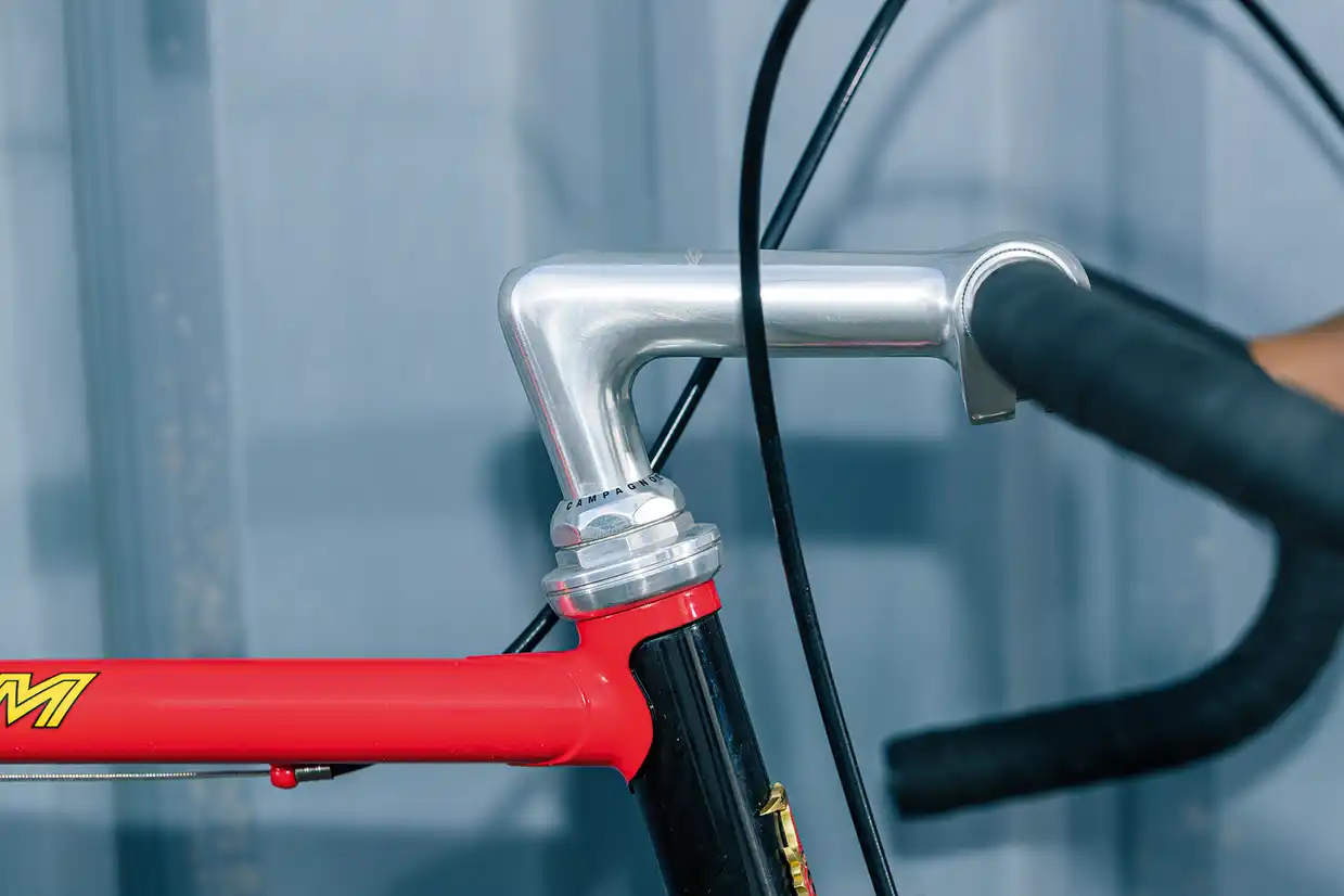 ▲Raleigh TI 40周年纪念版的鹅颈把立,设计再精巧纤细的现代头管把立和垫圈,也比这个看起来粗壮的多
