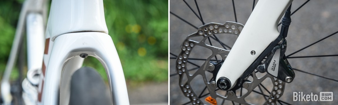 新款DOMANE车架的功能性是非常强的,处了下管储物功能外,还提供了充足的挡泥板安装位,前后均可非常牢靠地安装全覆式挡泥板。在雨季装上挡泥板那是相当安逸的。