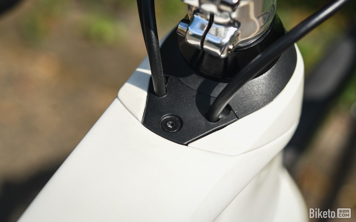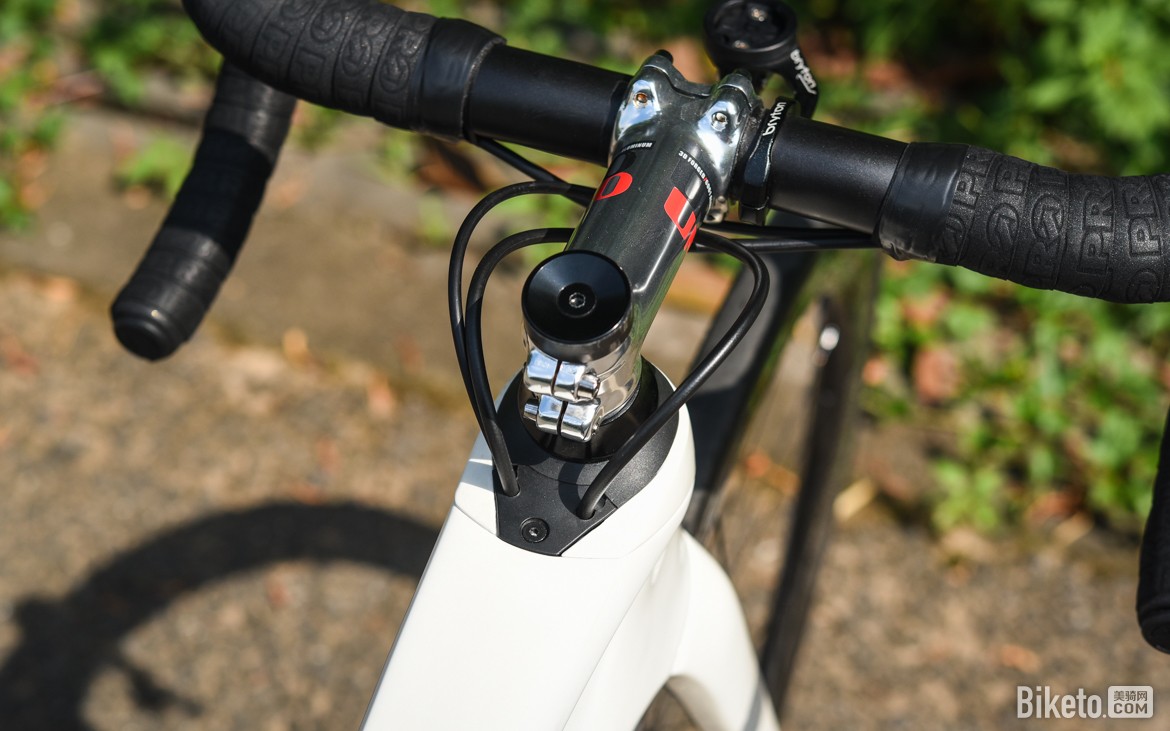 DOMANE使用把立后方进线的走线方式,小编没有使用BONTRAGER的把立,就没有那个整合式理线器,所以使用交叉走线会更顺一些,对转向没有干涉。