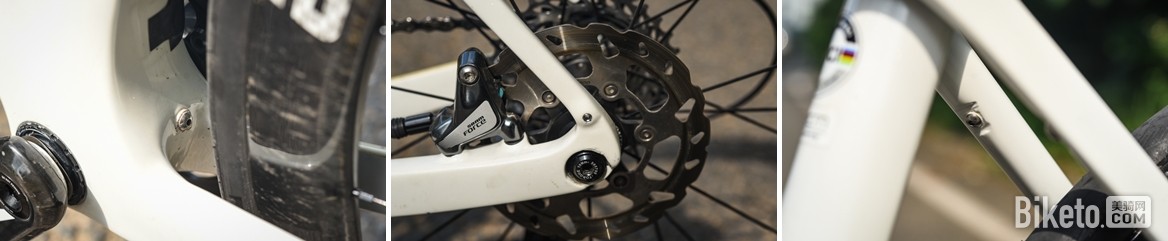 前后叉的轮胎间隙都很大,感觉非常清爽干净。车架最大支持38c轮胎,SL级别车型标配的轮胎也达到了32c。以至于有些车友直接用DOMANE改装成全地形公路车。