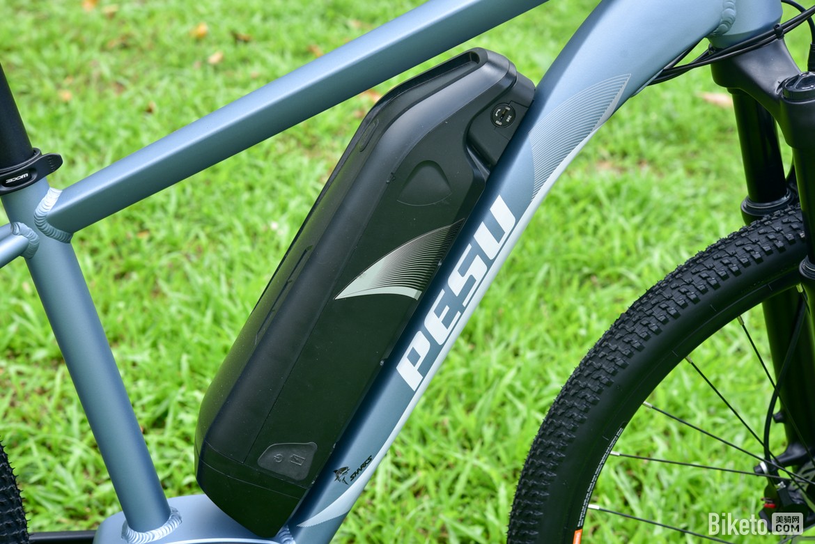 外置13Ah大容量电池通过三颗内六角螺丝紧固在下管电池支架上,简单粗暴。相比野兽车型白鲨的下管相对纤细并未完全贴合电池,用手可以感受到电池的轻微晃动,不过日常使用中基本不会影响到电池的稳固,厂商也表示在后续的成品车型中会打上锁固胶进行加强。