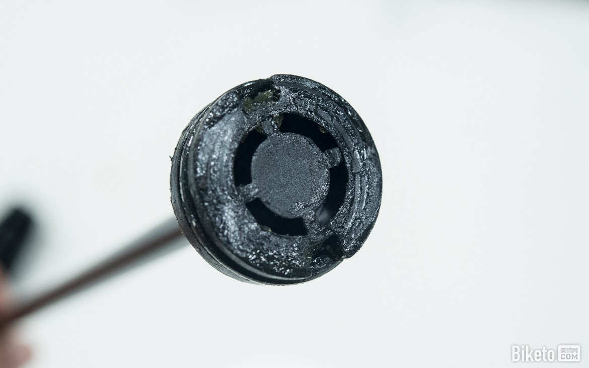 我们可以看到在活塞周边会有一些杂质,这是在平常户外使用过程中一些细小的沙尘“偷偷溜进来”的,我们可以把它简单清理出去,还气筒内部一个干净的空间。